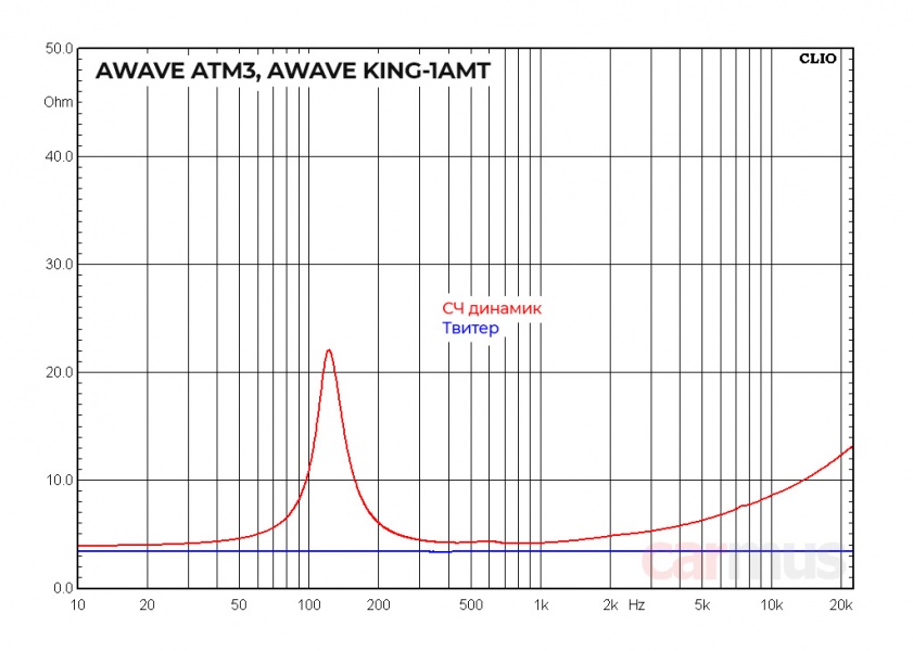 У твитеров, как и полагается для АМТ, импеданс практически не зависит от частоты – усилитель «видит» такую нагрузку как будто это обычный резистор (ещё один аспект для минимизации искажений).