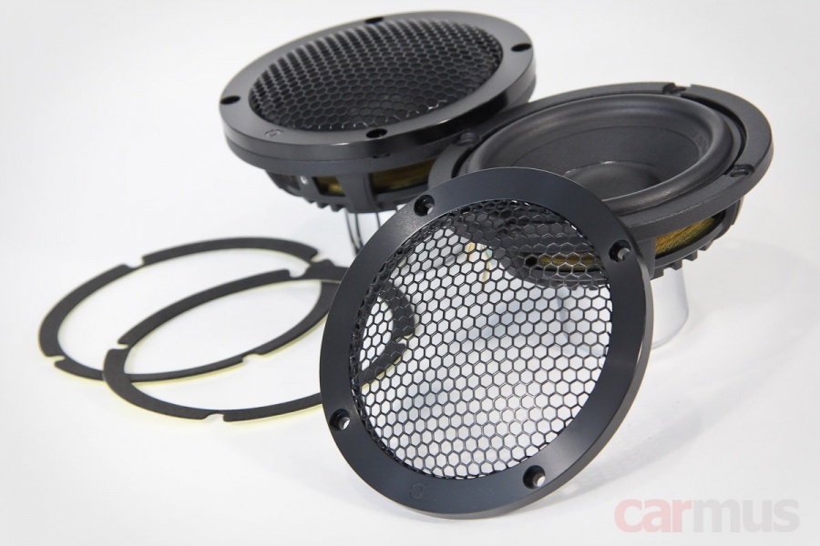 В комплекте идут защитные грили с добротными металлическими кольцами. Ложатся на динамики сверху и общий диаметр не увеличивают – в кастомных инсталляциях это порой становится значительным плюсом: позволяет избежать громоздкости.