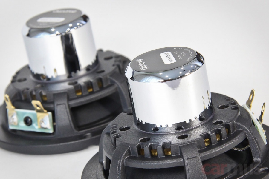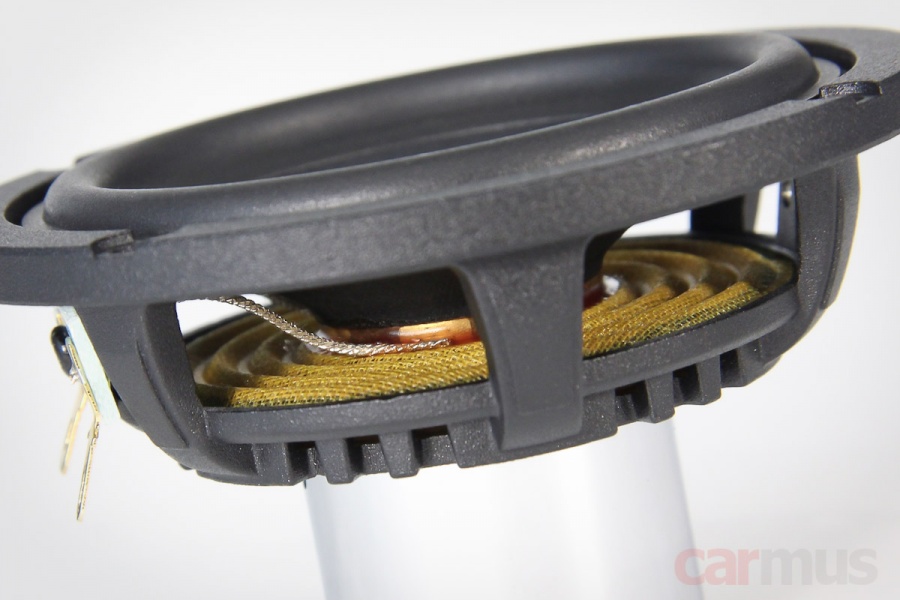Моторы имеют обращённую конструкцию и немного непривычные пропорции. С одной стороны, глубина динамиков с такими магнитными системами получается сравнительно большой – 4,8 см от монтажной плоскости. С другой стороны, диаметр самой магнитной системы – всего 3,5 см, и в итоге пространство за динамиком остаётся всё равно достаточно свободным.