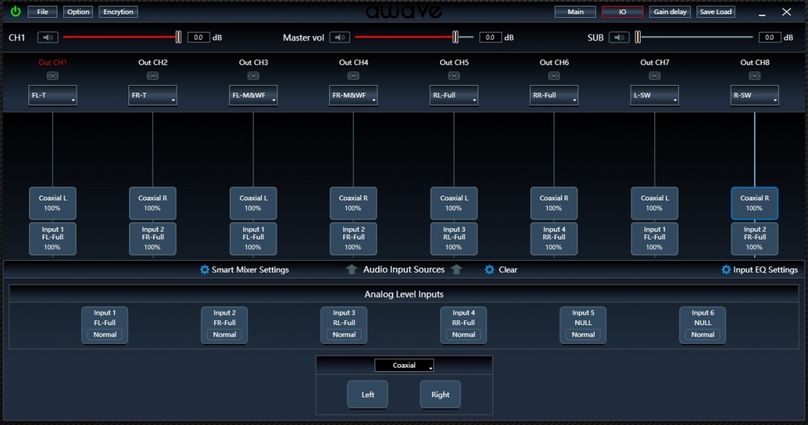 На самом деле Awave DSPA8D можно назвать, скорее, не усилителем с процессором, а наоборот – процессором с собственными каналами усиления. Систему можно построить с ними, а если захочется побольше мощности, их можно обойти и подключить внешние – в этом смысле вариативность применения широчайшая. А ещё, как оказалось, по части обработок сигнала DSP предлагает даже немного больше, чем можно было бы ожидать в его цене.