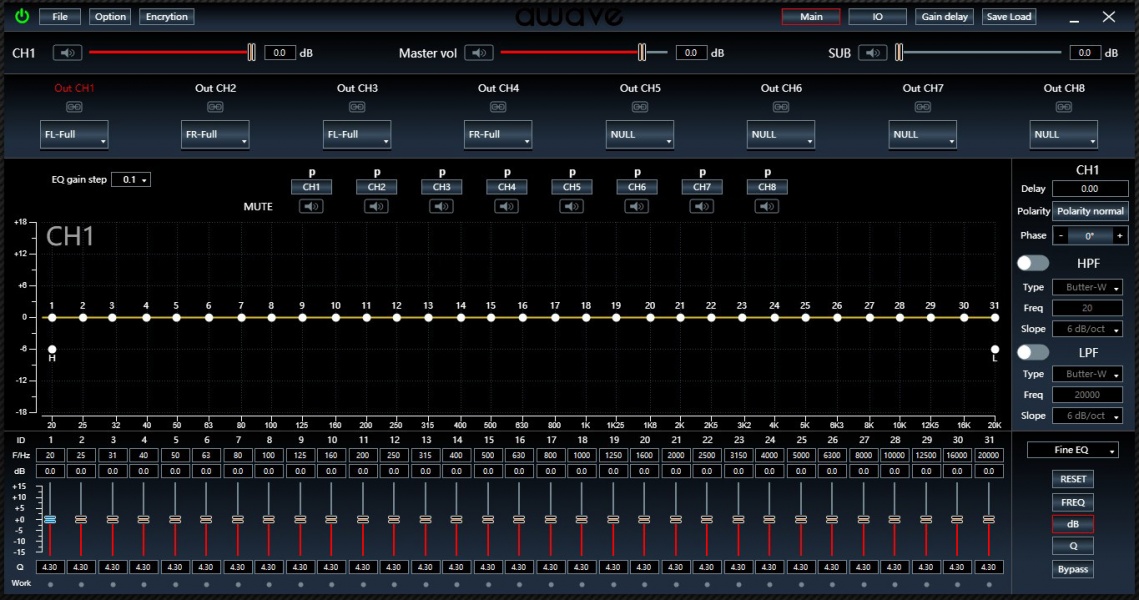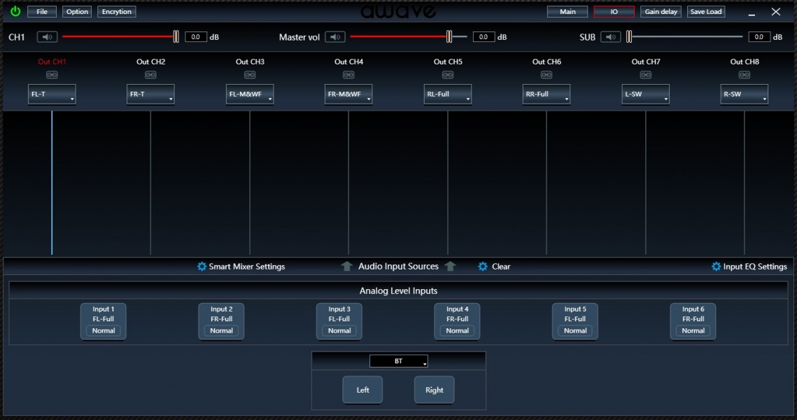 В последнее время Awave наконец-то начал уходить от множества программ для своих процессоров. По крайней мере, для настройки DSPA8D нужна та же программа, что и для протестированного недавно Awave DSP8.1, хотя построены они на разных вычислительных платформах. Софт скачивается с официального сайта. На момент этого теста актуальная версия – DSP PC Tool 3.8.19.